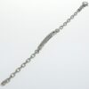 UncategorizedEsclava rodiada con eslabón rectangular de 7.75 mm. Placa hueca satinada en el centro de 5 cm de larga y 5.15 mm de ancha. Cierre de mosquetón y 20.5 cm de largo. Plata de ley de 925 milésimas.