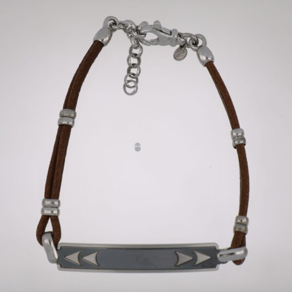 Esclava de Cuero Marron y Plata placa con doble Flecha