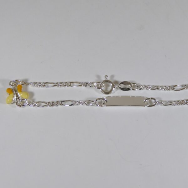 Esclava infantil con cadena 3+1. Placa de 5.20 mm y 2 cm de largo.Mariposa esmaltada. 17.5 cm de largo. Plata de ley de 925 milésimas.