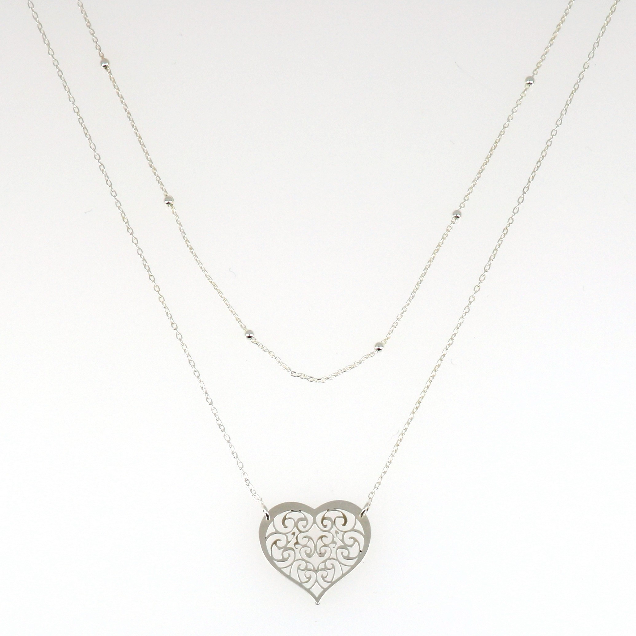 Gargantilla de Plata con bolitas y corazon calado