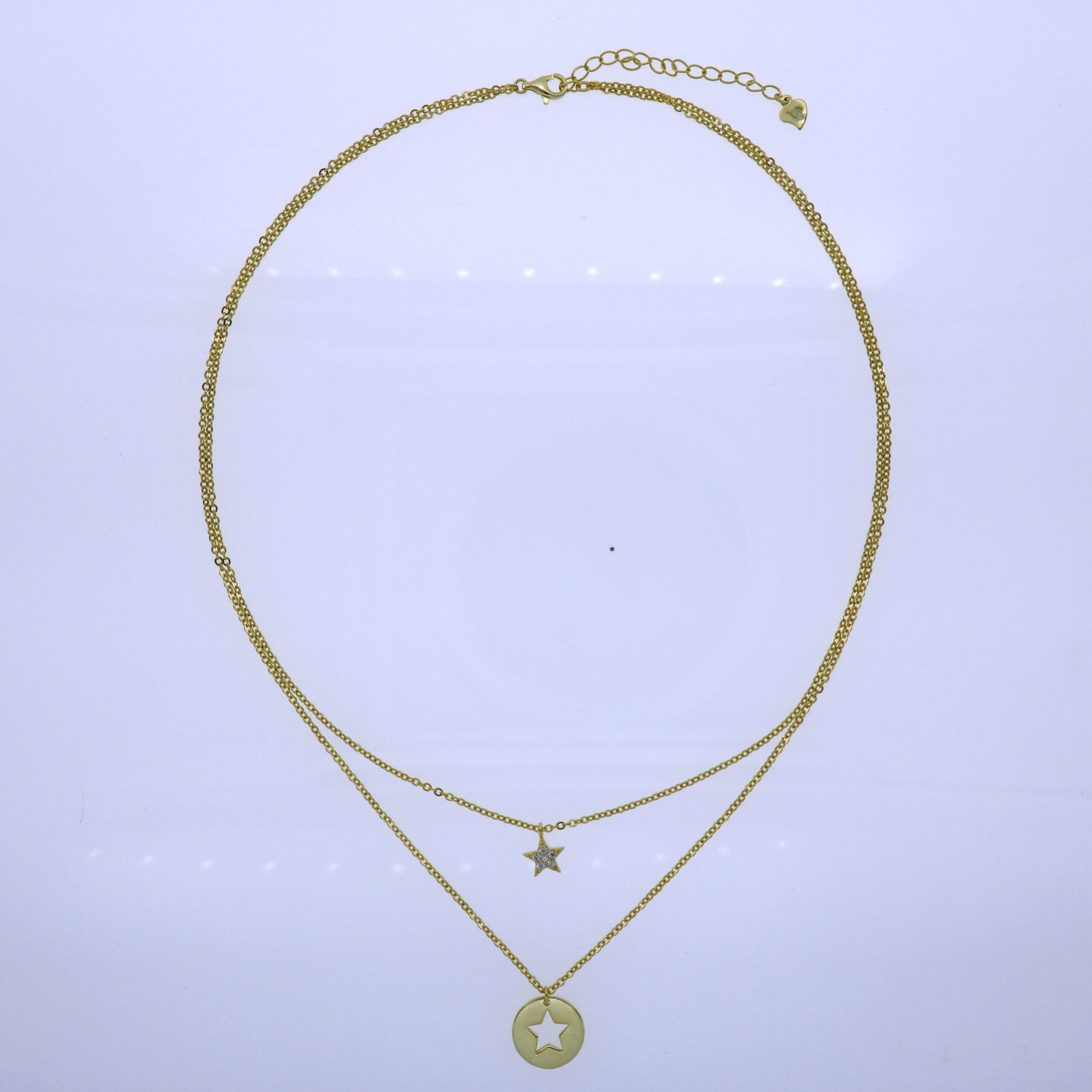 • Gargantilla de Plata rodiada cadena doble con colgante luna y otro circonita
