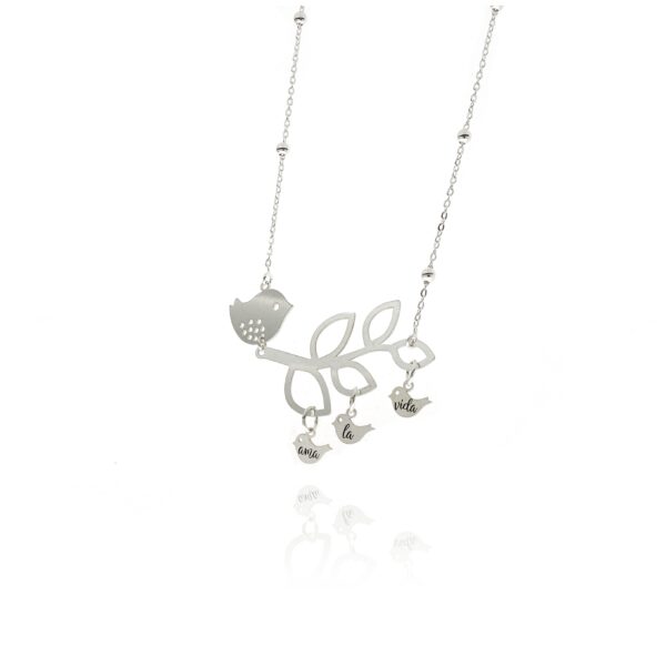 Gargantilla de Plata rama con pájaros