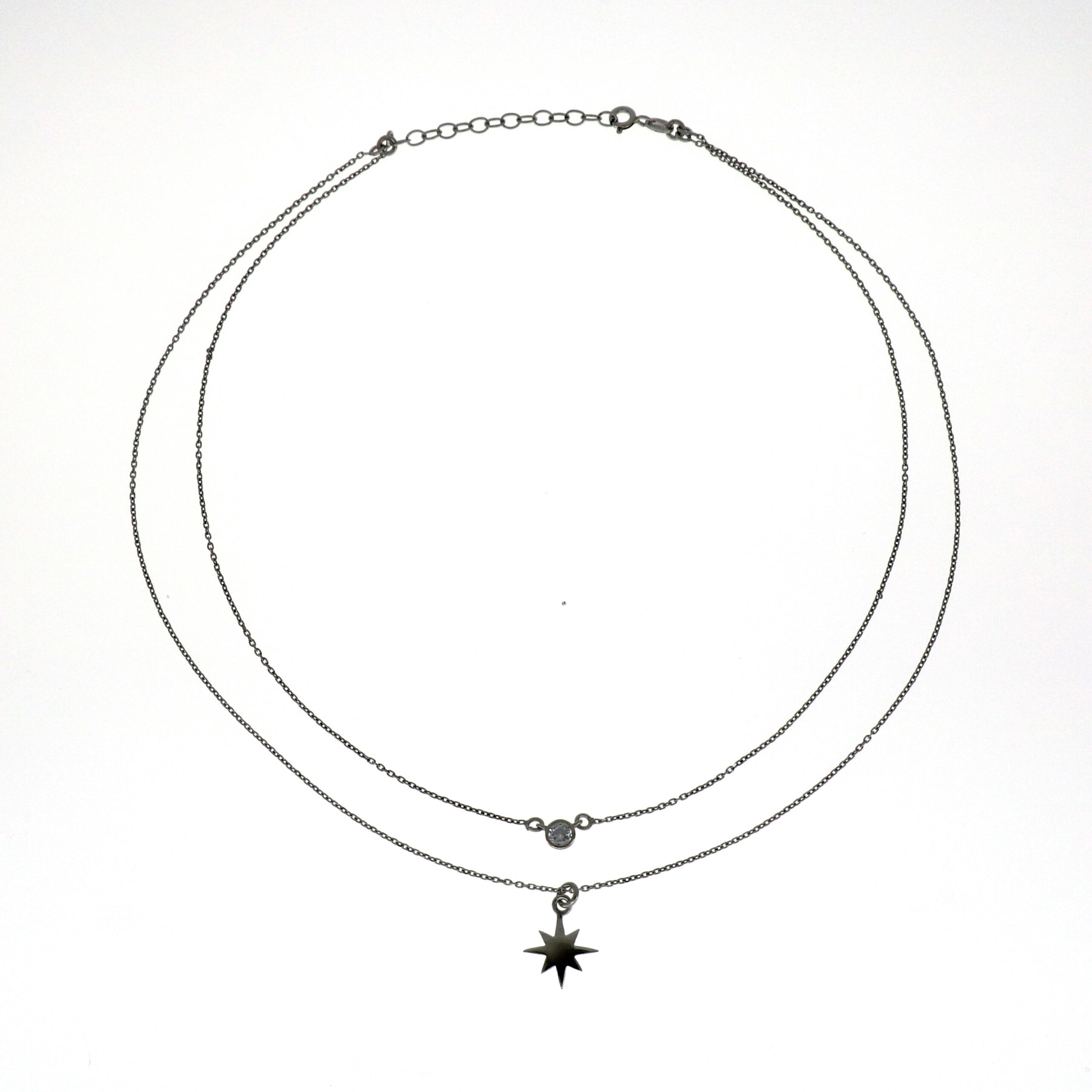 Gargantilla de Plata rodiada doble con estrella y piedra