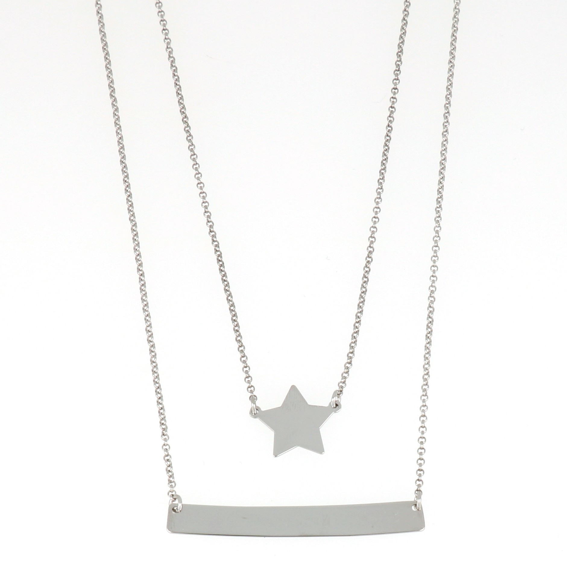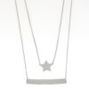 Gargantilla de Plata rodiada doble con placa lisa y estrella