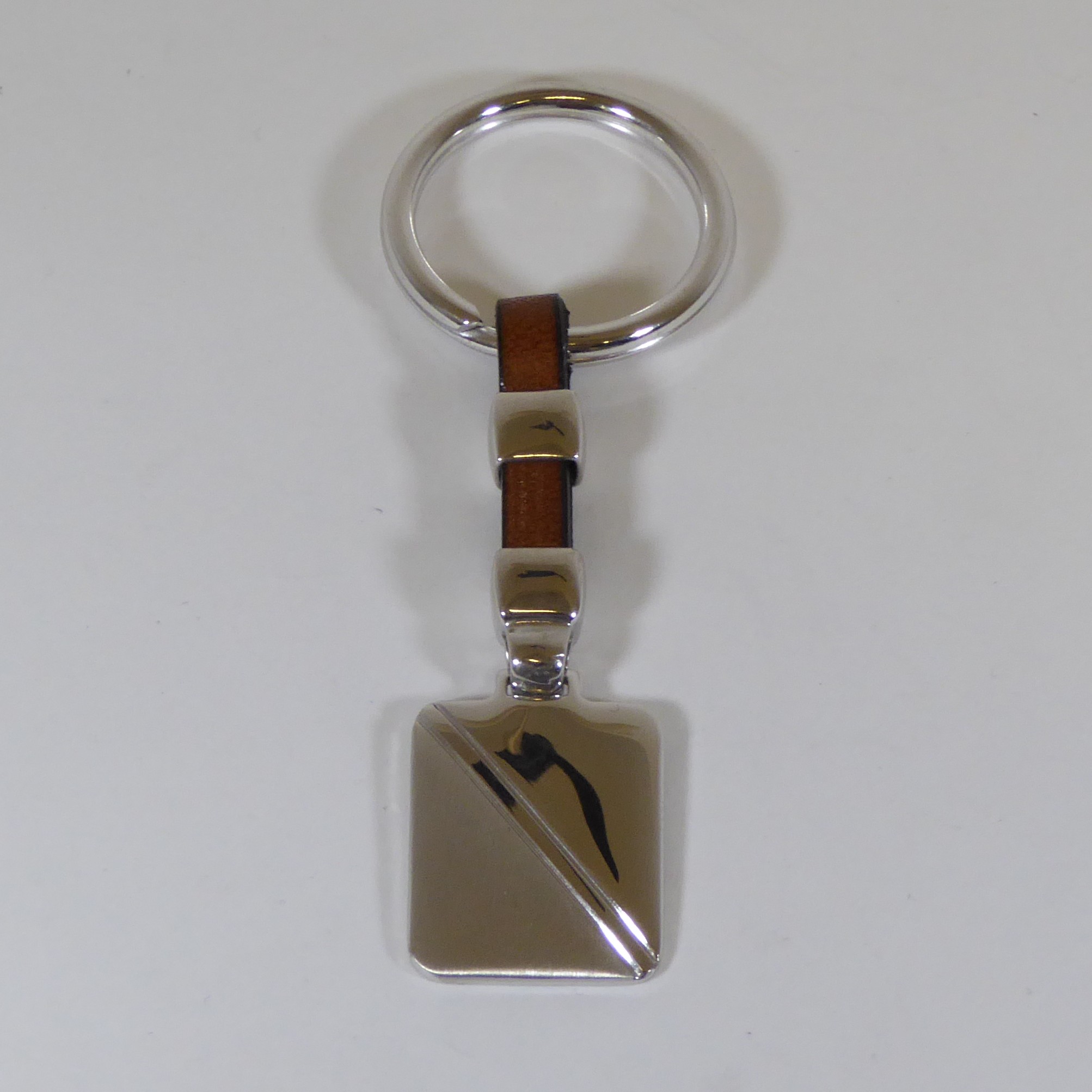 UncategorizedLlavero con cuero negro.Con anilla de 21.40 mm de interior. Placa rectangular, con parte lisa y parte satinada. 22.20 mm de largo y 18.25 de ancho.