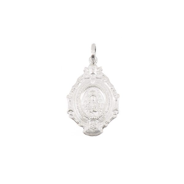 Medalla de la Hdad. de la Virgen del Rocio de Almonte. Doble cara 34.30 mm de largo y 22.20 mm de ancho.