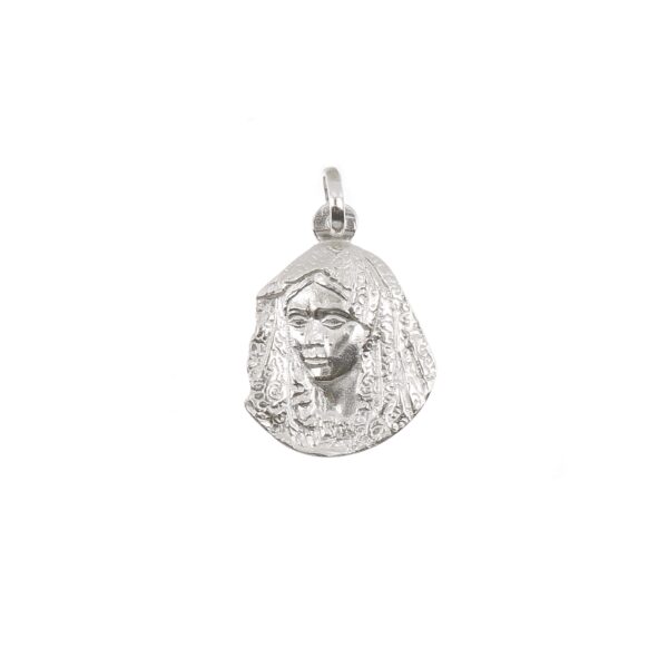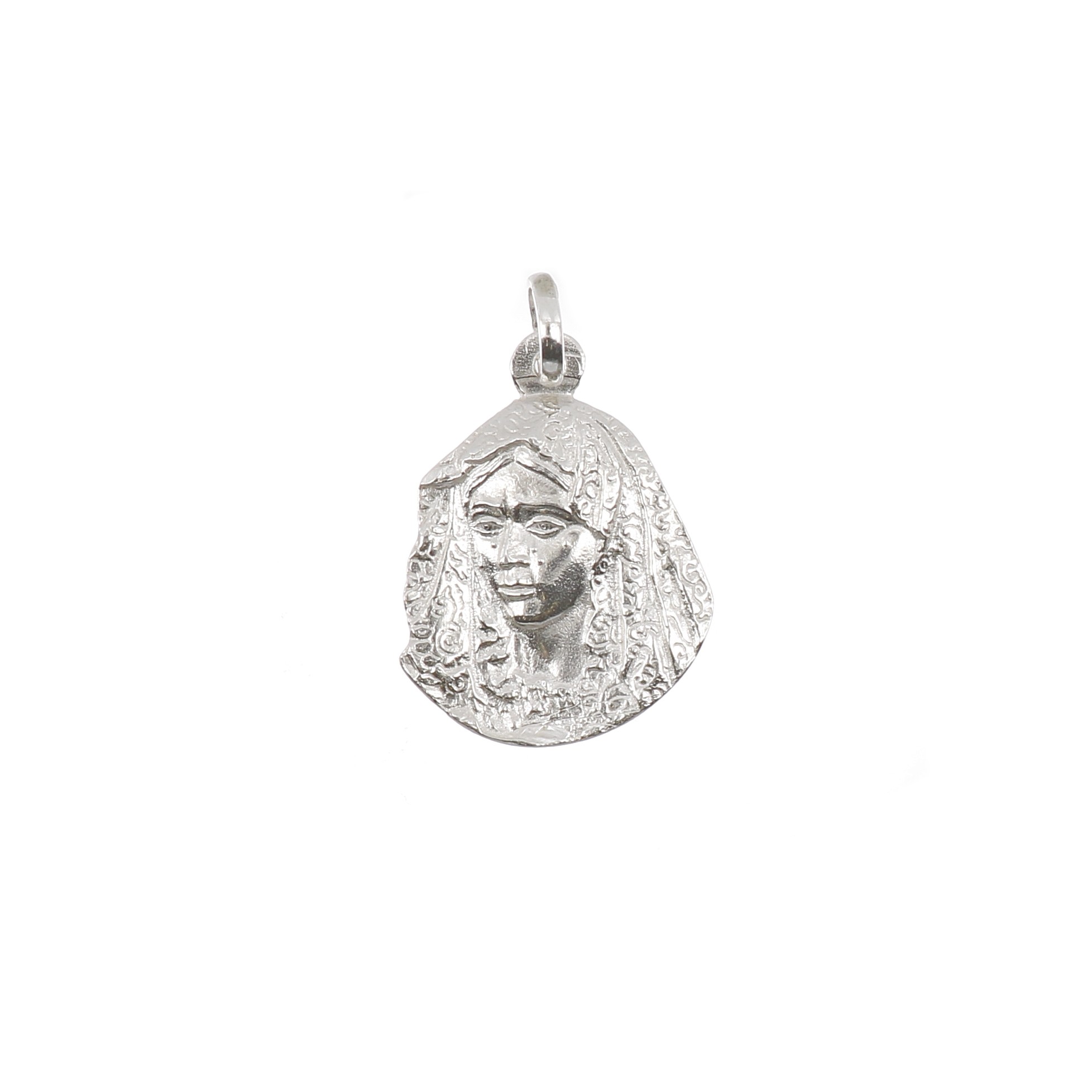 UncategorizedMedalla de la Virgen de la Macarena con mantilla y asa redonda. 31 mm de largo y 23.65 mm de ancho.