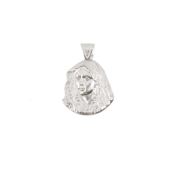 UncategorizedMedalla de la Virgen de la Macarena con mantilla y asa tallada. 36.80 mm de largo y 29.95 mm de ancho.