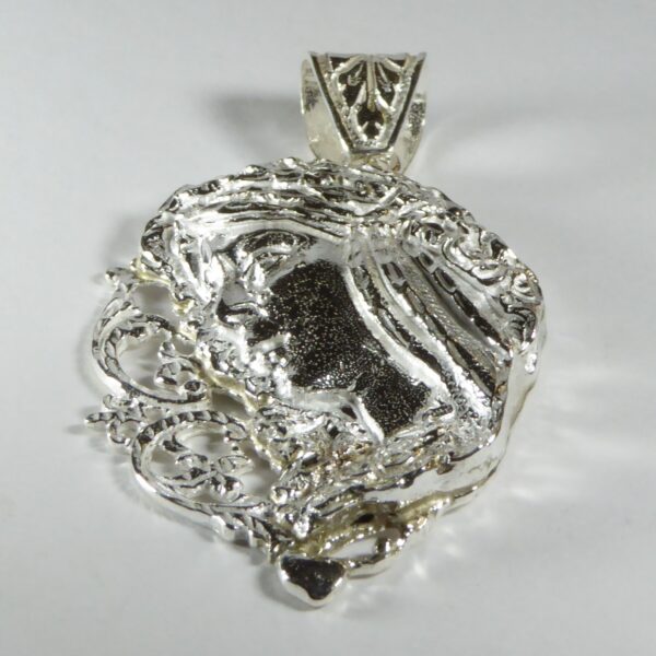 UncategorizedMedalla de la virgen de la Macarena, estampado a doble cara.Asa tallada. 37 mm de largo y 25.10 mm de ancho.