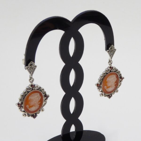 Pendiente de Plata Camafeo con Piedras Color Blanco y rojo