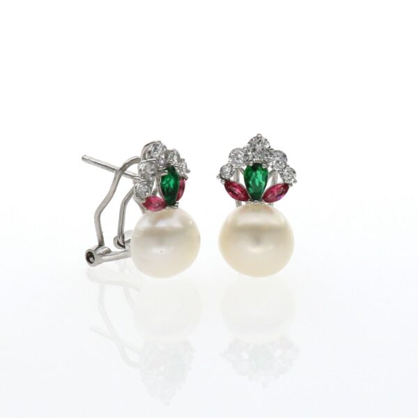 Pendientes de Plata con Perla y piedras de colores