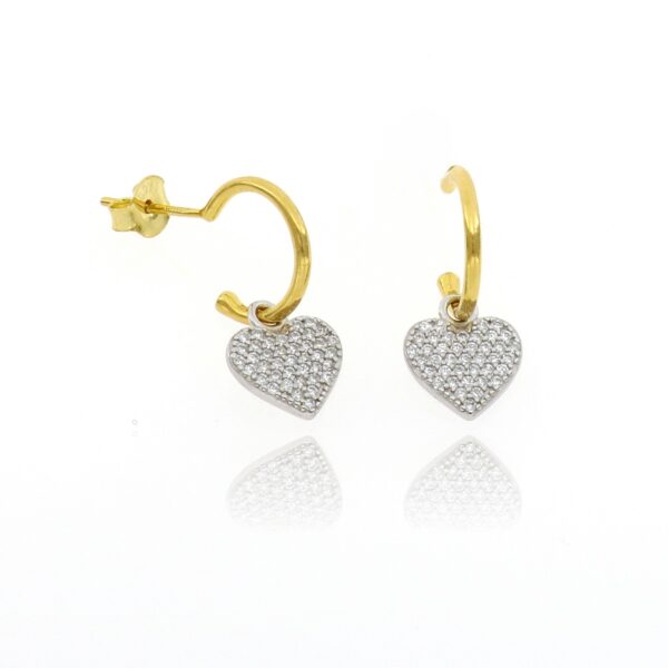 Pendientes de Plata Dorada Aro con colgante Rodiado Corazon de piedras