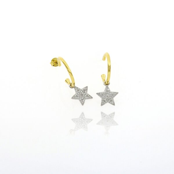 Pendientes de Plata Dorada Aro con colgante rodiando Estrella de Piedras