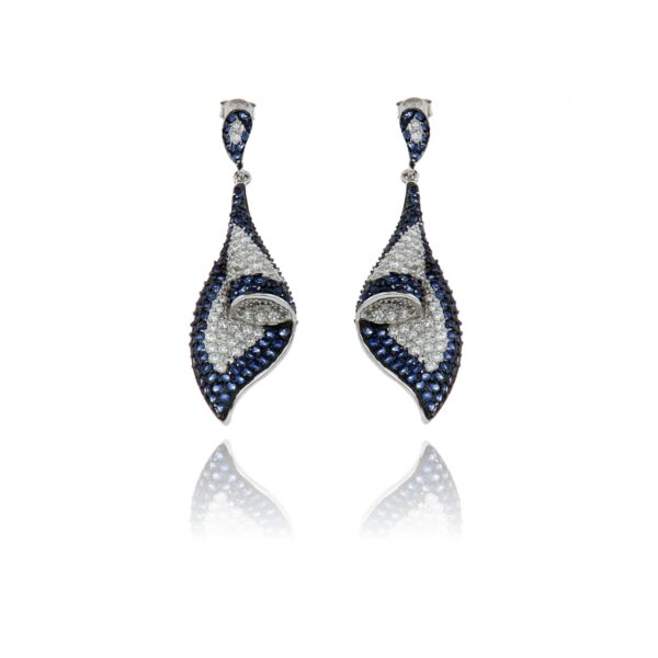 Pendientes de Plata rodiada con piedras blancas y azules