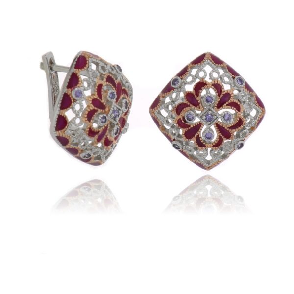 Pendientes de Plata rodiada con piedras y esmalte