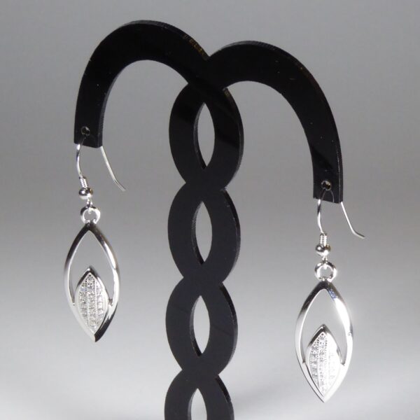 Pendientes de Plata rodiada ojivales con piedras