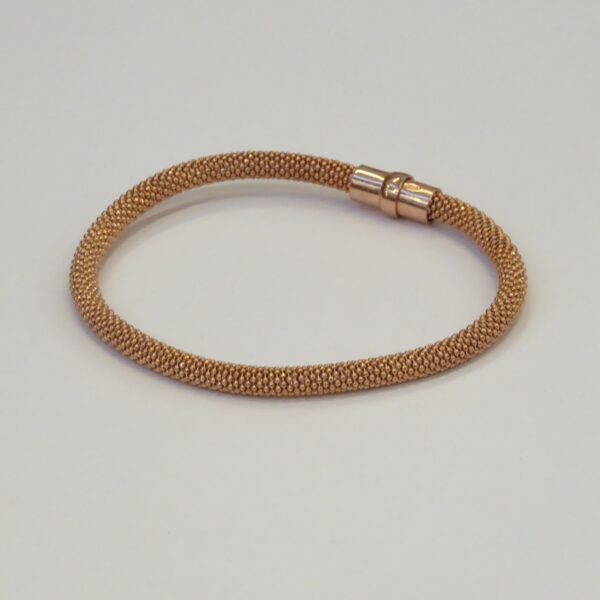 Pulsera de malla color cobre. De 4.50 mm de diámetro y 19.5 cm de largo. Con cierre de imán. Plata de ley de 925 milésimas.