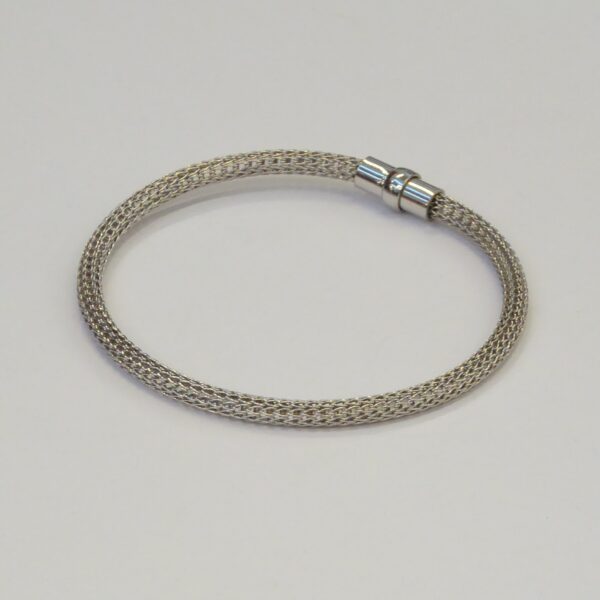 Pulseras, Sin piedrasPulsera rodiada de malla de tubo. De 3.80 mm de diámetro y 20 cm de largo. Con cierre de imán. Plata de ley de 925 milésimas.