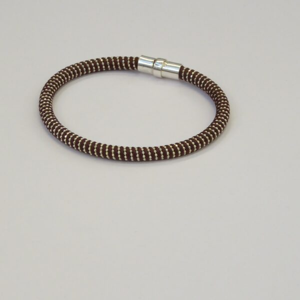 Pulsera de malla de tubo en color marrón. De 4.90 mm de diámetro y 19.5 cm de largo. Con cierre de imán. Plata de ley de 925 milésimas..