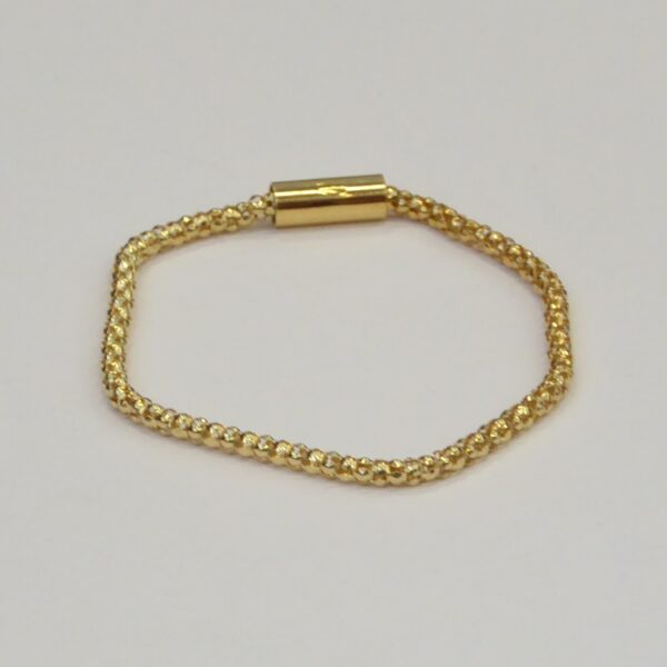 Pulsera de malla chapada. De 3 mm de diámetro y 19.5 cm de largo. Con cierre de imán. Plata de ley de 925 milésimas.