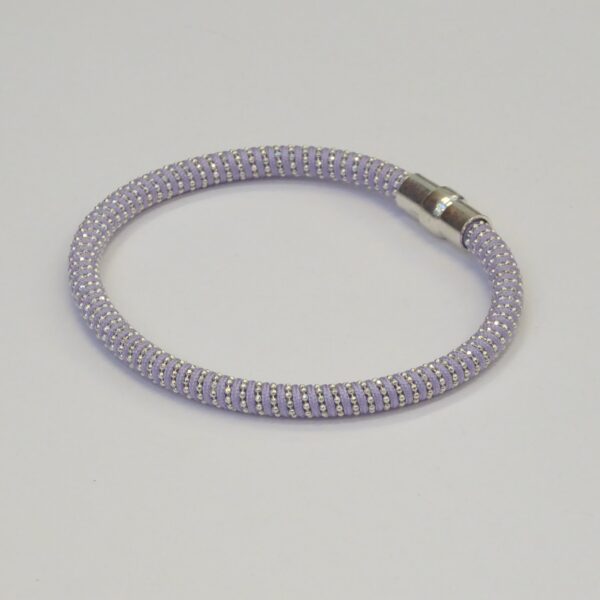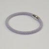 Pulsera de malla de tubo en color lila. De 4.80 mm de diámetro y 19.5 cm de largo. Con cierre de imán. Plata de ley de 925 milésimas.