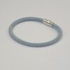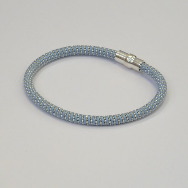 Pulsera de malla de tubo en color azul claro. De 4.80 mm de diámetro y 19.5 cm de largo. Con cierre de imán. Plata de ley de 925 milésimas.