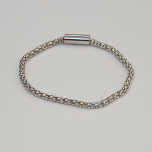 Pulsera de malla tubo chapada. De 3.40 mm de diámetro y 19 cm de largo. Con cierre de imán. Plata de ley de 925 milésimas.