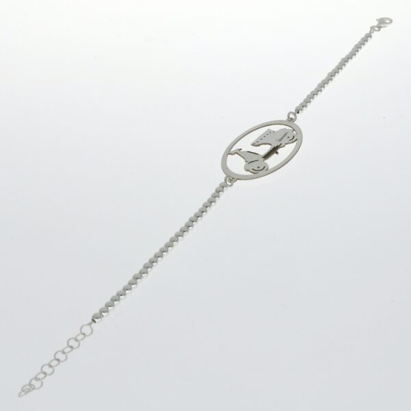 UncategorizedPulsera de bolas de 3 mm con placa ovalada en el centro.De 22.95 mm de ancho y 34 mm de largo con una moto vespa.