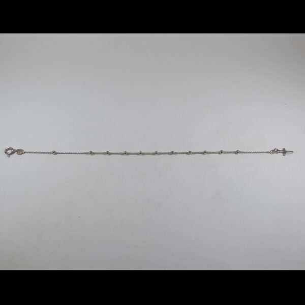 UncategorizedPulsera cadena forzada con bolas lisas de 2.5 mm y cruz de 1 cm en el cierre. 19 cm de largo. Plata de ley de 925 milésimas.