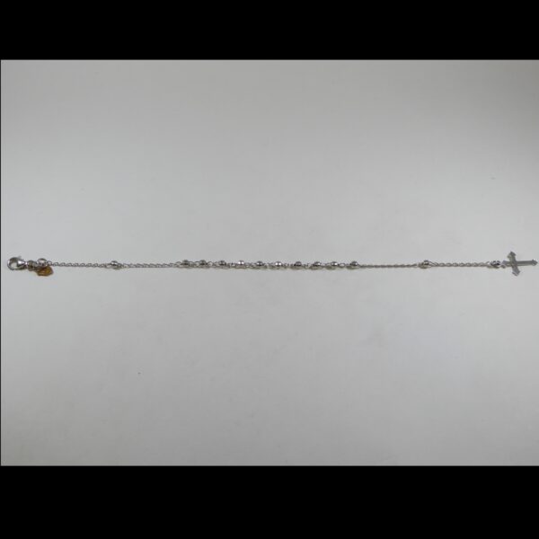 UncategorizedPulsera cadena forzada con bolas diamantadas de 3 mm y cruz de 1.5 cm en el cierre. 20 cm de largo. Plata de ley de 925 milésimas.