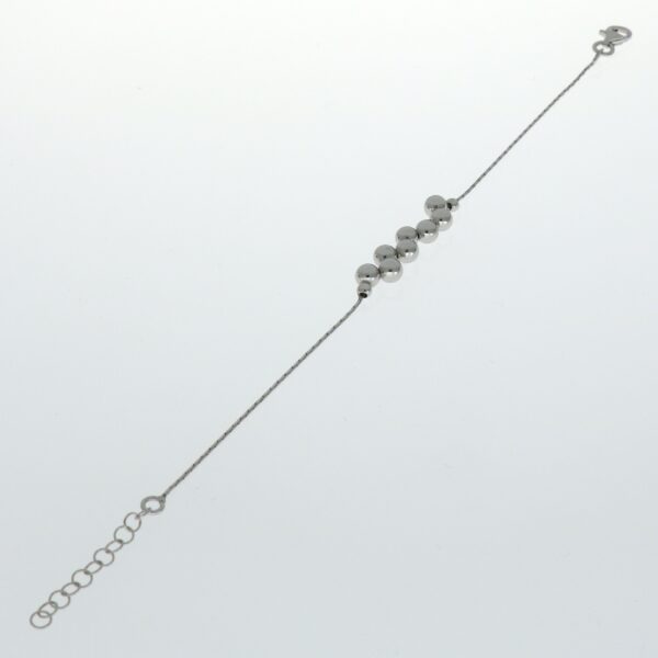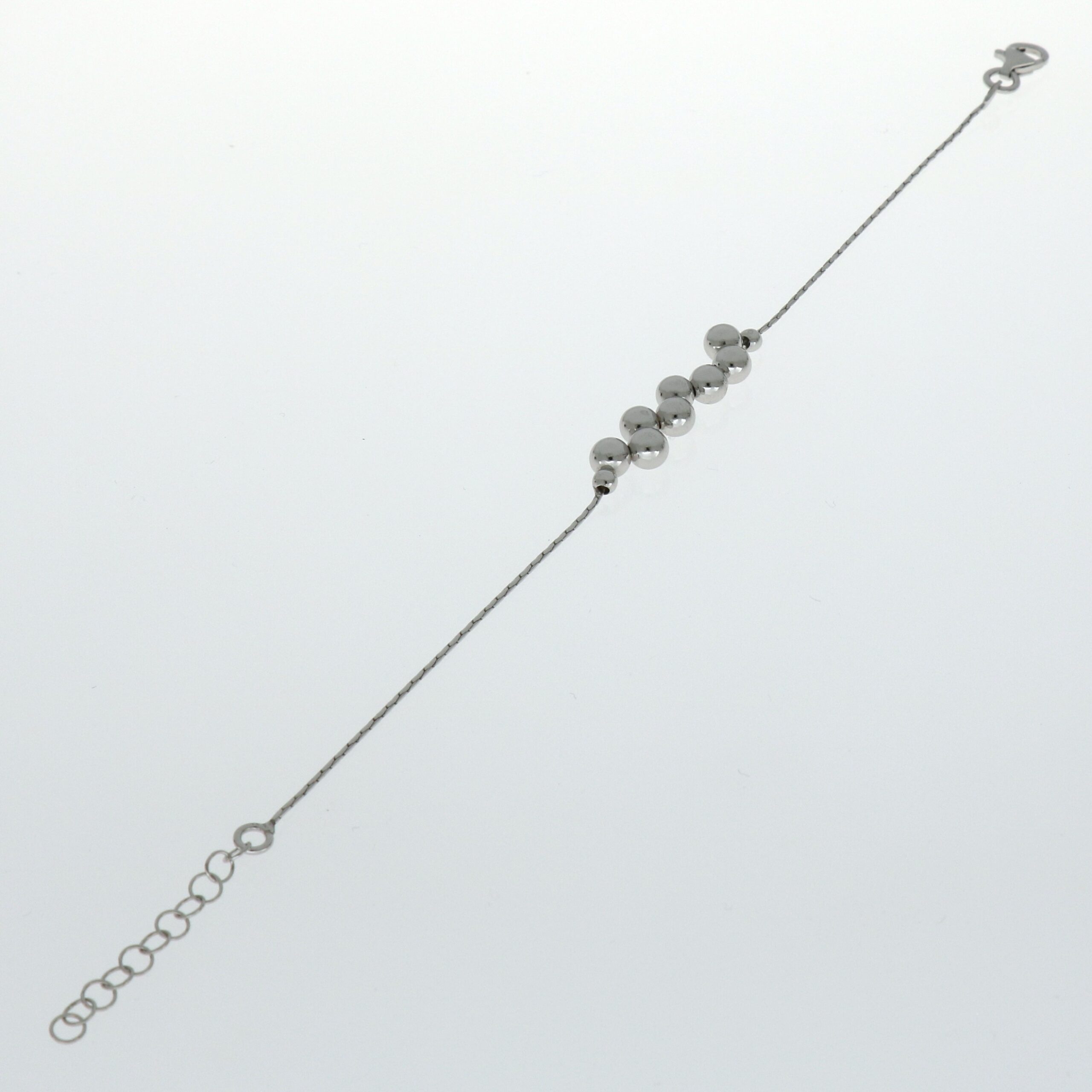 Pulsera con cadena veneciana redonda y bolas en el centro de 5 mm. 18 cm de largo y 3 cm da alargador. Plata de ley de 925 milésimas.