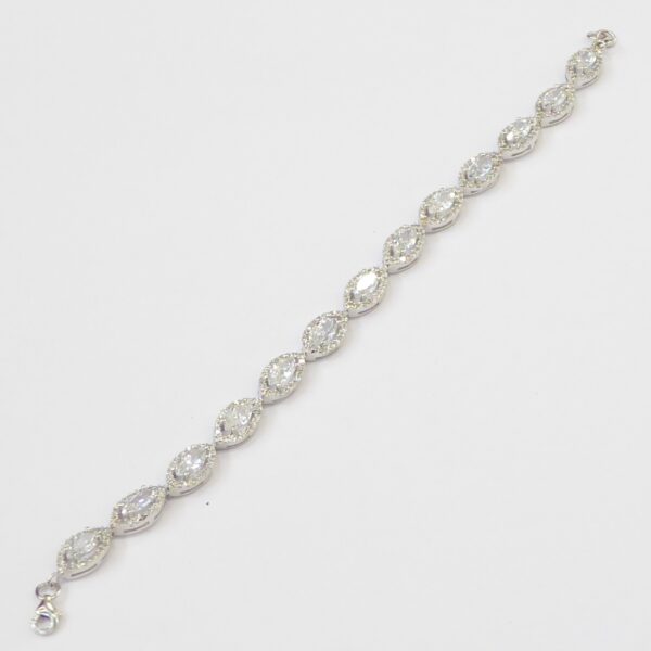 Pulsera con circonitas de 1 mm que rodea a una circonita ovalada de 7.70 mm por 3.95 mm.
