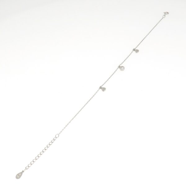 UncategorizedPulsera forzada de 1 mm, con dos corazones huecos y un chatón blanco colgando.