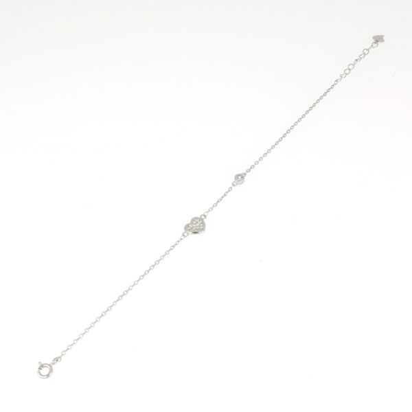 UncategorizedPulsera rodiada forzada de 1.30 mm. Con chatón y un corazón de circonitas blancas de 7.40 mm de ancho.