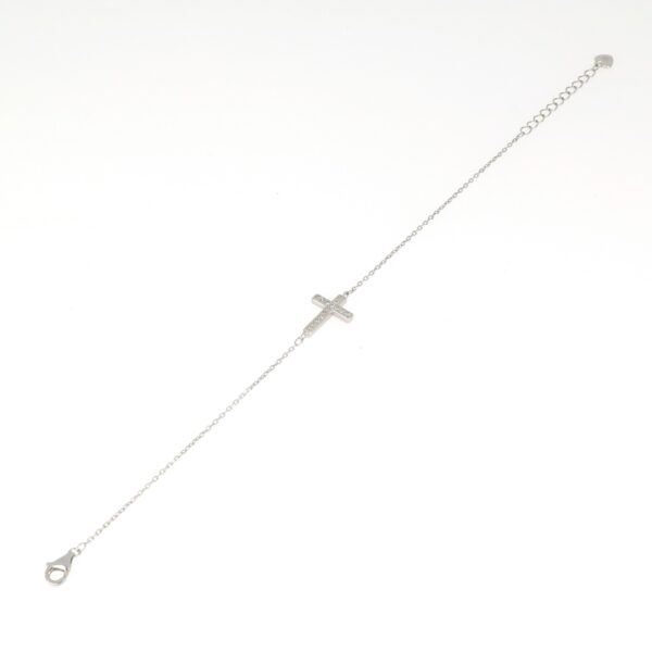 UncategorizedPulsera rodiada de cadena forzada de 1 mm con una cruz de circonitas en el centro.