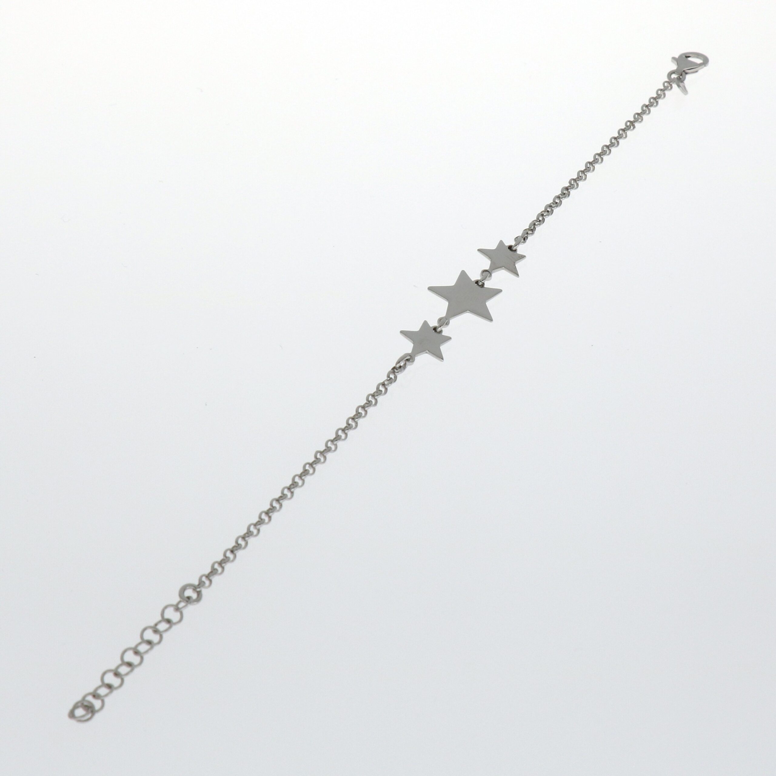 UncategorizedPulsera rodiada. Cadena rolo diamantada y tres estrellas lisas en el centro de 12.80 y 9.20 mm.