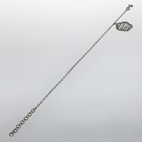 Pulsera rodiada, de cadena forzada con flor en el centro de 17 mm. Rodeada de hilos diamantados.17 cm y 3 cm de alargador. Plata de ley de 925 milésimas.