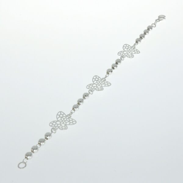 Pulsera de bolas diamantadas de 5 mm, con mariposas caladas y con tumbo de 14.25 mm.