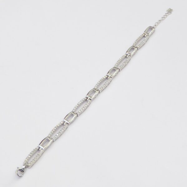 Pulsera rodiada con eslabones rectangulares combinados lisos y con circonitas de 2 mm.