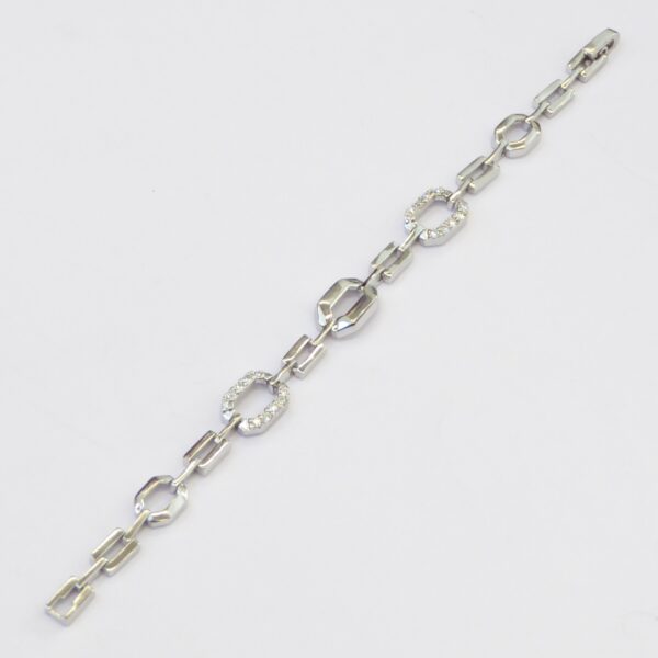 Pulsera rodiada con eslabones rectangulares lisos y con circonitas de 2 mm.Plata de ley de 925 milésimas.