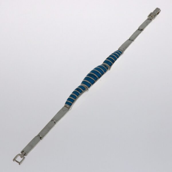 Pulsera articulada con turquesa en el centro, siendo la parte central de 10 mm de ancho.