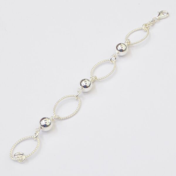 Pulsera de asas ovaladas talladas combinadas con bolas lisas de 10 mm. 19 cm de largo. Plata de ley de 925 milésimas.