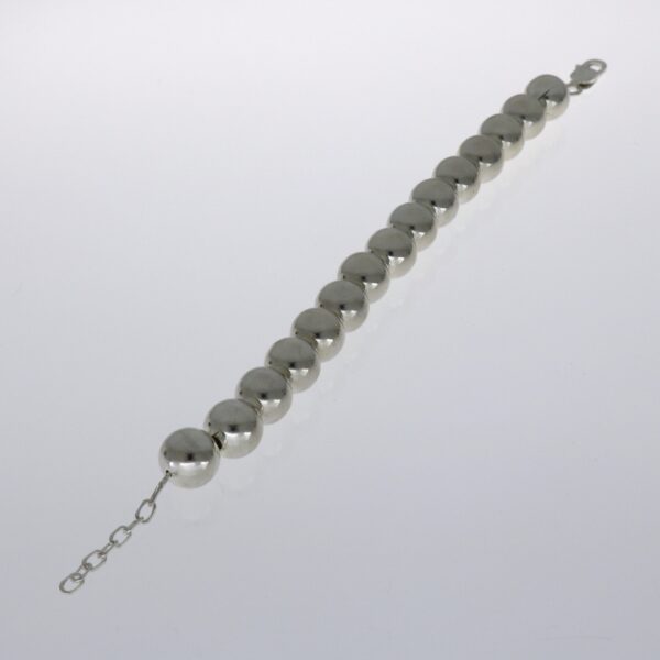 Pulsera de bolas de 12 mm. 20.5 cm de largo y 2.5 cm de alargador. Con cierre de mosquetón.