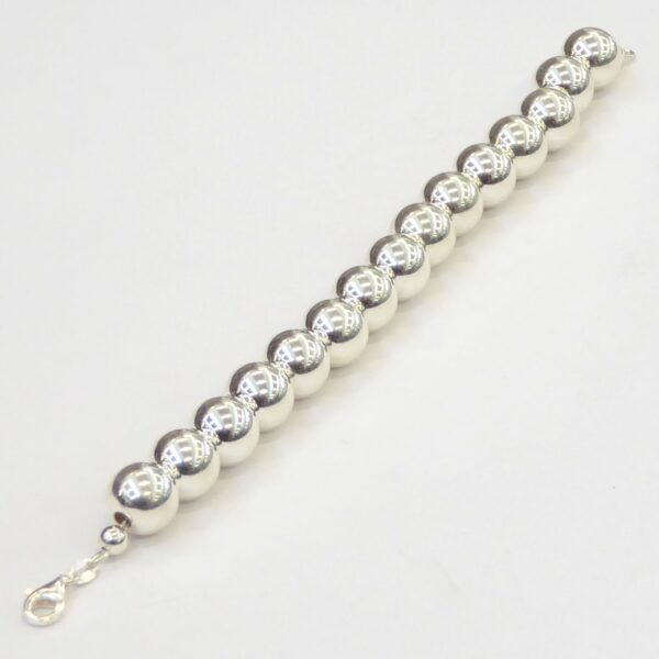 Pulsera de bolas lisas de 12 mm. 20.5 cm de largo. Plata de ley de 925 milésimas.