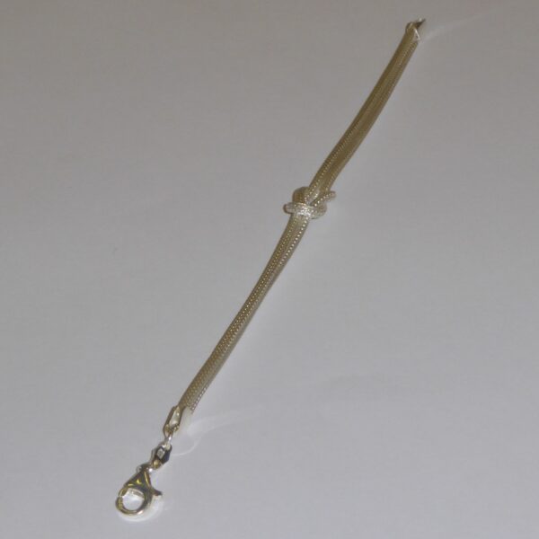 Pulsera de doble malla de 2 mm, con nudo en el centro. 19.5 cm de largo. Plata de ley de 925 milésimas.
