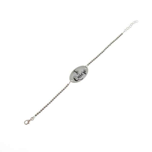 Placa en el centro de 17 mm de largo y 29 mm de ancho, con inscripción: Te quiero