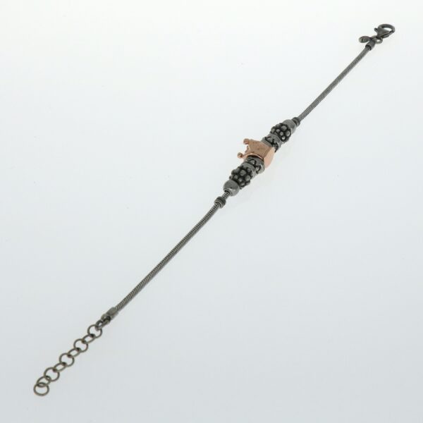 Pulsera de Plata envejecida y rosa con abalorios corona