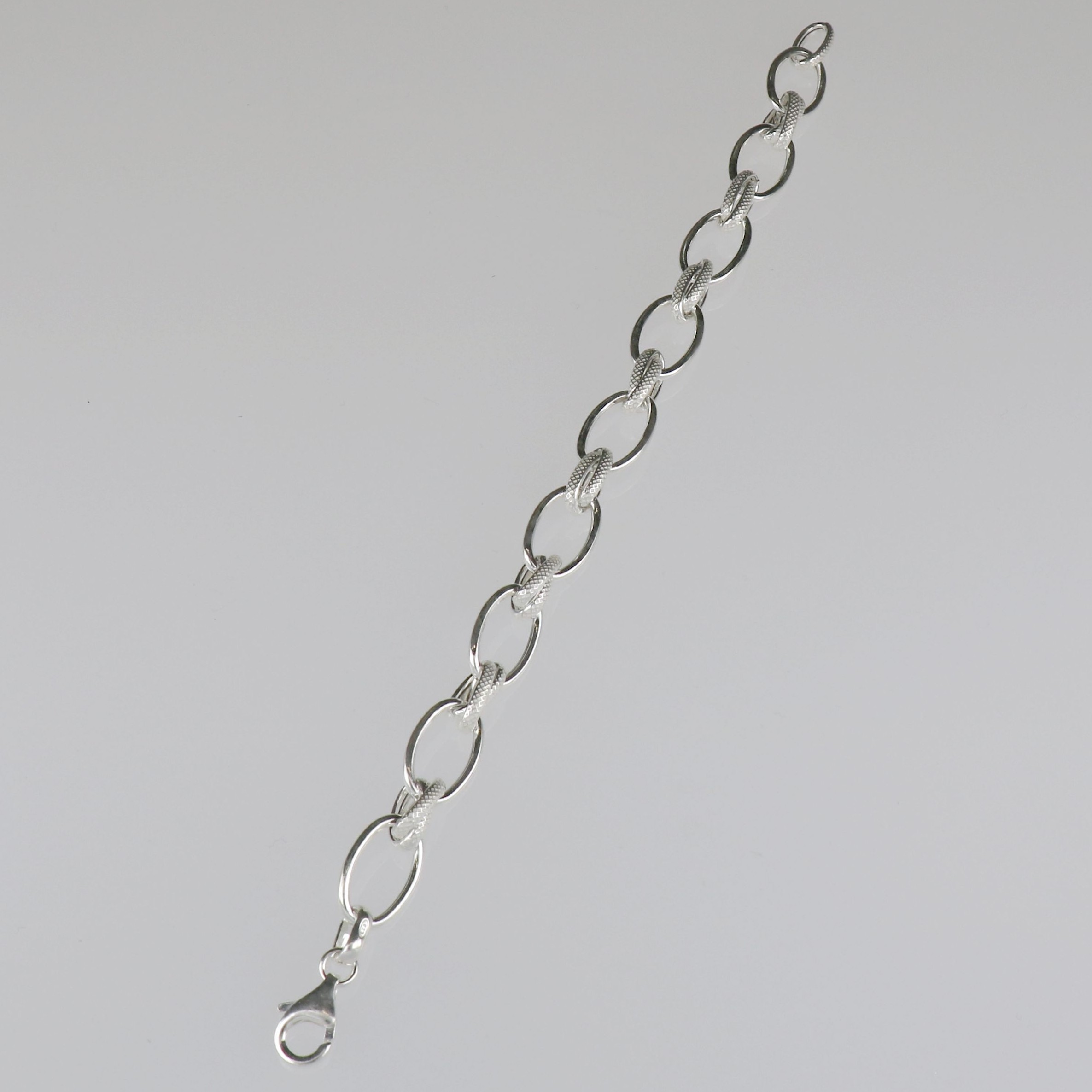Pulsera de Plata Eslabones Ovales lisos y Dobles pequeños granulados