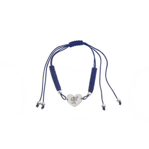 Pulsera de Plata hilo azul corazón con inicial F