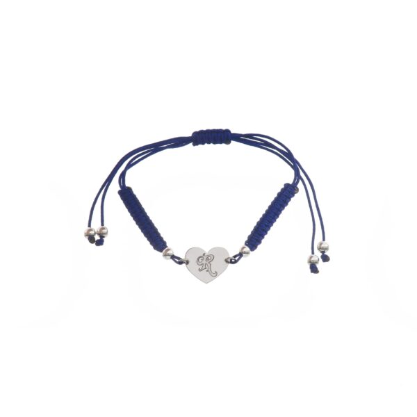 Pulsera de Plata hilo azul corazon con inicial R